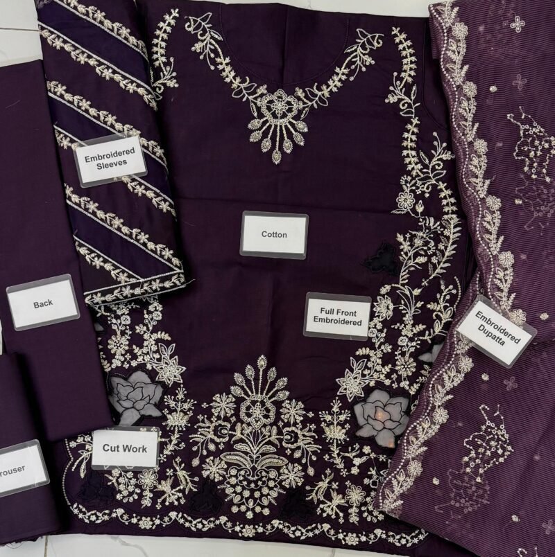 - Maria B Purple Luxury Unstitched Chikankari Embroidered